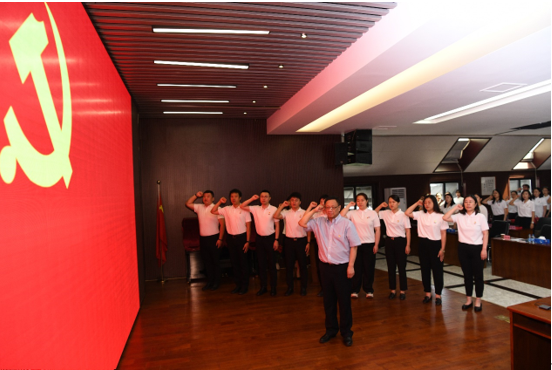 會議舉行了新黨員入黨宣誓儀式,黨委書記胡華強領(lǐng)誓,9名新黨員面對黨旗莊嚴宣誓,全體黨員與新黨員一起重溫了入黨誓詞。