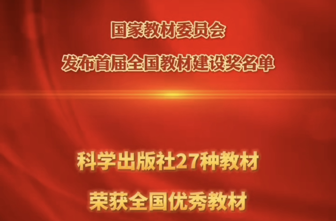 2021年10月9日,國家教材委員會發布了首屆全國教材建設獎獎勵決定,科學出版社27種教材榮獲首屆全國教材建設獎。